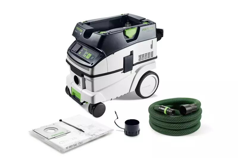 CLEANTEC CTH 26 EI imuroi luotettavasti karsinogeeniset ja patogeeniset pölylaadut, kuten home-, asbesti-, mineraalikuitu- ja lyijypölyn. Kaksikerroksisen turvapölypussin ansiosta vaaralliset haitta-aineet pysyvät luotettavasti pölypussin sisällä. Lisäksi oleva jätesäkki ympäröi pölypussin. Imurin toimintaa on helppo ohjata sen kosketusnäytön avulla. Kiinteä Bluetooth® liitäntä, joka käynnistää imurin automaattisesti Festoolin akkutyökalun tai valinnaisen kauko-ohjaimen komennolla. Yhdistettävissä myös Festool-sovellukseen. Sileää, antistaattista imuletkua voi säilyttää kätevässä, sisäänrakennetussa letkunpitimessä. Näin imuristasi tulee järjestelmän keskipiste.