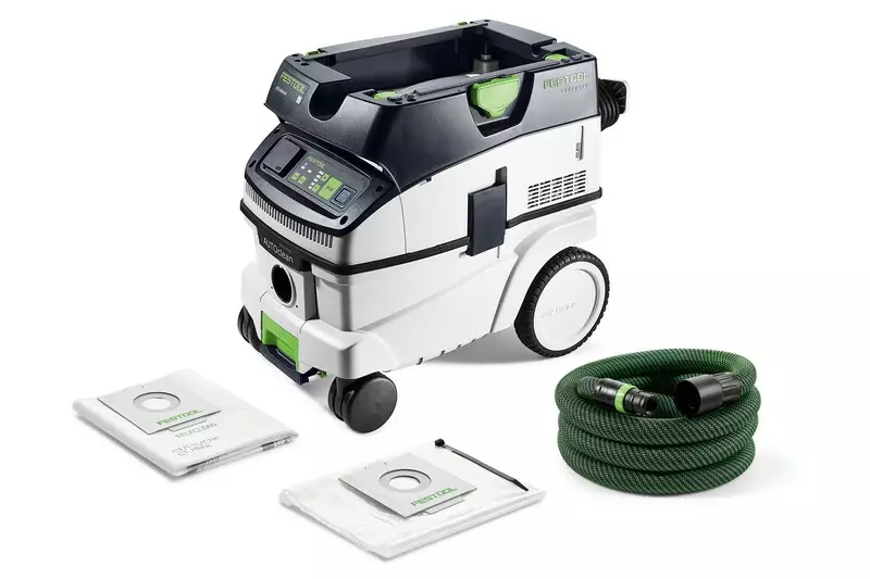 CLEANTEC CTL 26 EI AC on edukseen edeltäjäänsä verrattuna pääsuodattimen entistä tehokkaamman AUTOCLEAN-puhdistuksen ansiosta. Tämä varmistaa tasaisen voimakkaan imutehon, mahdollistaa entistä pidemmät työjaksot, pidentää suodattimen käyttöikää ja vähentää huollon tarvetta. Imurin toimintaa on helppo ohjata sen kosketusnäytön avulla. Kiinteä Bluetooth® liitäntä, joka käynnistää imurin automaattisesti Festoolin akkutyökalun tai valinnaisen kauko-ohjaimen komennolla. Imuri on verkkoyhteydessä myös Festool-sovellukseen, jossa voit asettaa esimerkiksi suodattimen puhdistusvälit. Sileää, antistaattista imuletkua voi säilyttää kätevässä, sisäänrakennetussa letkunpitimessä.