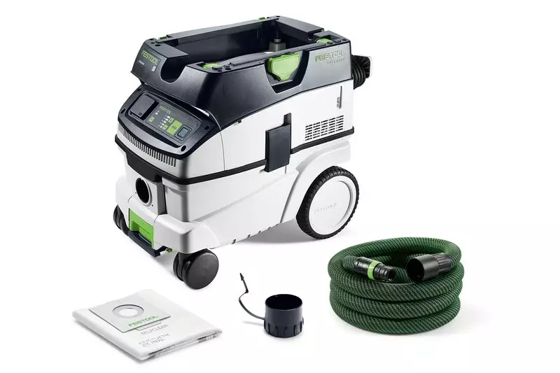 26 litran pölysäiliöllä varustettu CLEANTEC CTM 26 EI on kompaktin kokoinen imuri suurten pölymäärien imurointiin. Imurin toimintaa on helppo ohjata sen kosketusnäytön avulla. Kiinteä Bluetooth® liitäntä, joka käynnistää imurin automaattisesti Festoolin akkutyökalun tai valinnaisen kauko-ohjaimen komennolla. Yhdistettävissä myös Festool-sovellukseen. Sileää, antistaattista imuletkua voi säilyttää kätevässä, sisäänrakennetussa letkunpitimessä. T-LOC-lukolla voit liittää imuriin nopeasti Systainerin, esierottimen tai Workcenterin. Näin imuristasi tulee järjestelmän keskipiste.