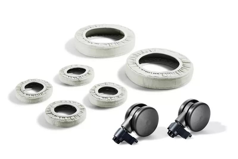Herkkien lattiapäällysteiden, kuten parketin, suojaamiseksi naarmuilta imurin pyörät voi varustaa pyöränsuojuksilla. Ne eivät hankaa ja ne on valmistettu kestävästä ja pestävästä kankaasta. Ne on helppo asentaa ennen käyttöä ja ottaa pois töiden jälkeen. Jälkiasennussarja sisältää kuusi pyöränsuojusta sekä kaksi etupyörää, jotta voit varustaa pyöränsuojuksilla myös vuoteen 2024 asti valmistetun CT 26 E- tai CT 36 E -mallin.