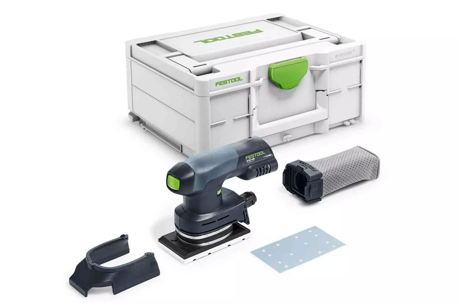 Voimakas 18 V:n Ergo-akku takaa 3,0 Ah:n kapasiteetillaan verkkovirtakäyttöistä konetta vastaavan tehon. Tämä mahdollistaa kompaktin rakenteen, joka varmistaa tasaisen painonjaon, erinomaisen ergonomian ja kevyen, vain 1,4 kg:n painon. Longlife-pölynkeruupussilla varustettu automaattinen pölynpoisto tekee työkalusta kätevän – tämä takaa vaivattoman työskentelyn myös pään yläpuolella olevissa kohdissa, pystypinnoilla ja hankalissa työkohteissa. Akun tilalle voi vaihtaa plug it-verkkoadapterin, joka takaa työkalun rajattoman käyntiajan – se on ihanteellinen ratkaisu kiinteäasenteiseen käyttöön ja kun työskennellään Festool järjestelmäimurin kanssa.