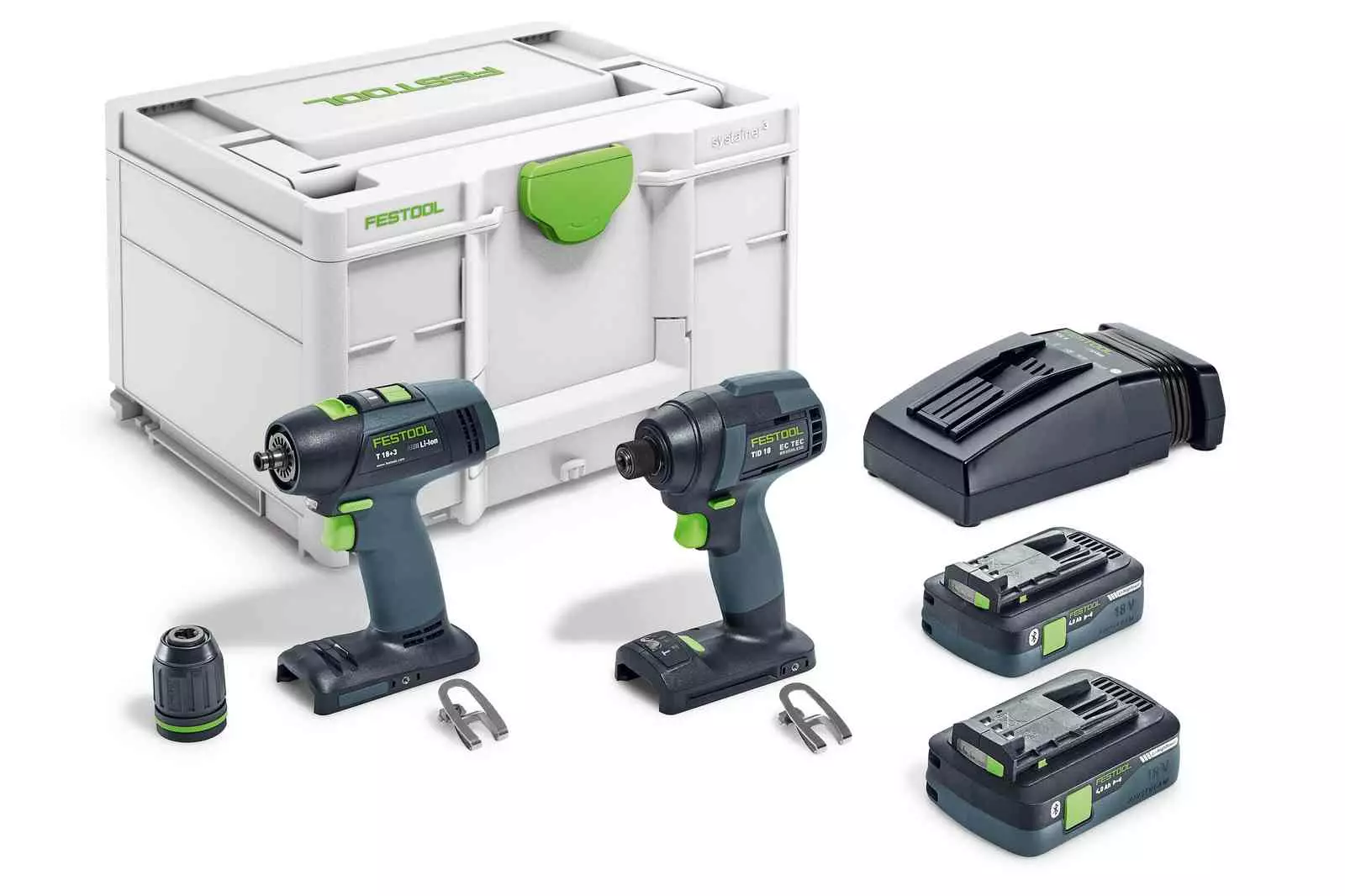 Erinomaista joustavakäyttöisyyttä poraus- ja ruuvaustöihin tai erittäin suurta voimaa ja kestävyyttä raskaisiin tehtäviin. Akkuruuvinvääntimellä TPC 18+3 ja akkuiskuruuvinvääntimellä TID 18 pystyt vastaamaan optimaalisesti jokaiseen poraus- ja ruuvaushaasteeseen. Täysin elektronisella vääntömomentin säädöllä, CENTROTEC-pikavaihtojärjestelmällä, kulmavaihteella, epäkesko-osalla ja syvyysvasteella varustettu T18+3 on erittäin joustavakäyttöinen ja mahdollistaa nopean vaihdon poraus- ja ruuvaustyön välillä. TID 18 on kompakti ja kestävällä iskukoneistolla varustettu voimapakkaus, joka tarjoaa valtavan pitkän käyttöiän. TID 18 kiertää ¼“:n istukallaan yksinomaan ruuvia – ei rannetta: tangentiaalinen iskukoneisto toimii ilman voimia syövää vastamomenttia. Molemmat koneet vakuuttavat harjattomalla ja siten huoltovapaalla EC-TEC-moottorillaan, joka yhdessä tehokkaan akun kanssa takaa maksimaalisen kestävyyden. Akkuruuvinväännin ja akku varmistavat ongelmattoman työskentelyn, koska ne kuuluvat kaiken kattavan Festool Service -takuun piiriin.