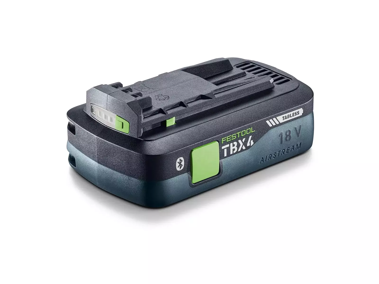 Tehokas, navattomalla teknologialla varustettu TBX 4 -akku on erittäin kevyt ja kätevä virtalähde tehokkaaseen työskentelyyn. Navattomien kennojen ansiosta: entistä vähäisempi lämpeneminen, pidempi käyttöaika ja nopeampi lataus. AIRSTREAM SCA 16 -pikalaturin AIRSTREAM-teknologian ansiosta akkua viilennetään aktiivisesti ennen latausta ja latauksen aikana, joten akun saa ladattua täyteen äärimmäisen nopeasti. Navattomien akkujen optimoitu energiavirta antaa käyttöösi lisäannoksen virtaa ja pidentää akkujen käyttöikää. Kun akkutyökalu kytketään päälle, se käynnistää pariliitetyn pölynimurin automaattisesti Bluetooth® yhteydellä – lisäksi se antaa Festool-sovelluksen kautta yksityiskohtaisia tietoja akun varaustasosta, lämpötilasta tai latausjaksoista. Se kuuluu luonnollisesti myös kaiken kattavan, kolmen vuoden pituisen Festool Service -takuun piiriin.