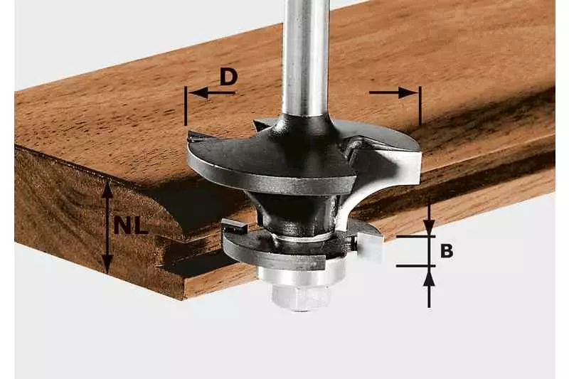 Vastaprofiilijyrsinterä uudenaikaisille huonekaluoville, voidaan käyttää vain yhdessä jyrsinterän nro 491130 kanssa