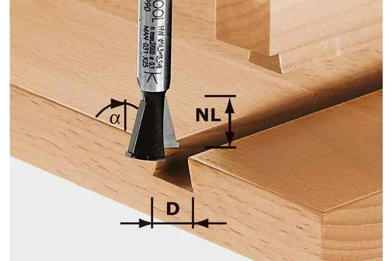 Terä on varustettu erityisesti jäykistelistojen jyrsintää varten piirtoterällä. Kulma-alue on takajyrsitty paremman liitoksen takaamiseksi
