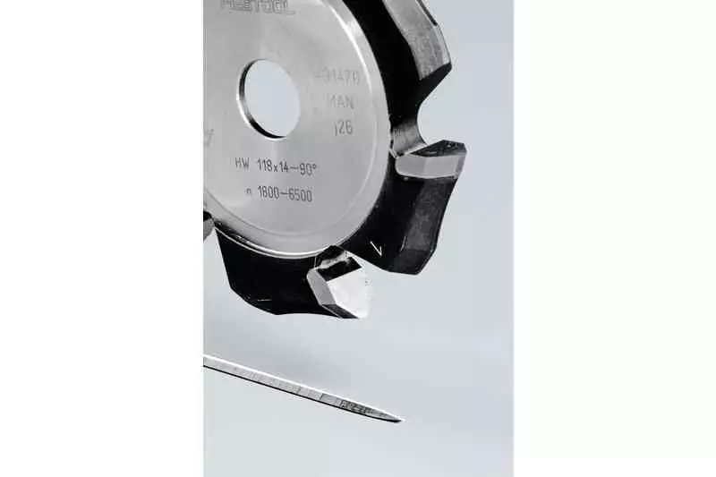FESTOOL V-urajyrsin HW 118x14-90°/Alu 491470 Pääkäyttökohteet Erikoisjyrsinterä levyjyrsimelle PF 1200 Tekniset tiedot D 118,00 mm Alpha 90,00 °