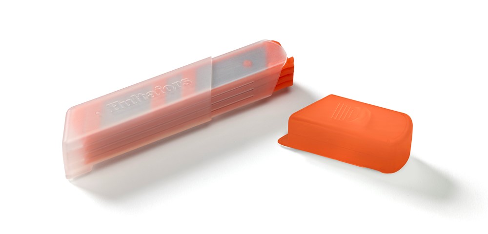 terät on pakattu kätevään säilytysrasiaan, jossa neljä teräpakkausta, joissa kolme terää kussakin