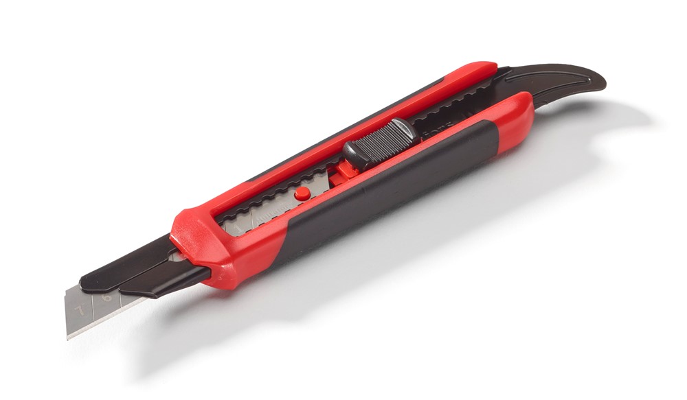 Ergonominen katkoteräveitsi taivutetulla metallisella päätykappaleella soveltuu erinomaisesti yleiskäyttöön mm. kipsilevyjen, eristeiden ja puun leikkaamiseen. Kumipäällysteisellä kahvalla varustettu veitsi sopii materiaaleille, joiden leikkaamisessa tarvitaan enemmän voimaa. Kapean kärjen ansiosta parempi näkyvyys, hallinta ja ulottuvuus. Taivutettu metallinen päätykappale on tehokas työkalu mattojen asentamisessa ja purkkien avaamisessa. Veitsen rungossa on tilaa kolmelle varaterälle. Veitsen runko on valmistettu kestävästä polykarbonaatti-muovista ja siinä on teräksinen ydin lisäämässä kestävyyttä ja vakautta. Teräkisko on 1 mm paksua metallia.
