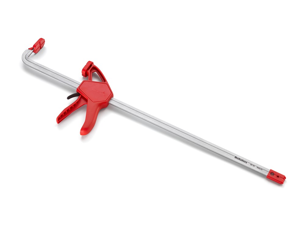 Kätevä yhdenkäden puristin on valmistettu lasikuituvahvisteisesta nailonista. Teräksinen kisko on taottu yhdestä kappaleesta ja sen ohut leukaosa helpottaa käyttöä ahtaissakin paikoissa. Puristuslevyjen uritetut kumitassut suojaavat puristettavia pintoja ja lisäävät puristusvoimaa. Suunnittelussa on painotettu kätevyyttä ja toimivuutta ahtaissa tiloissa.