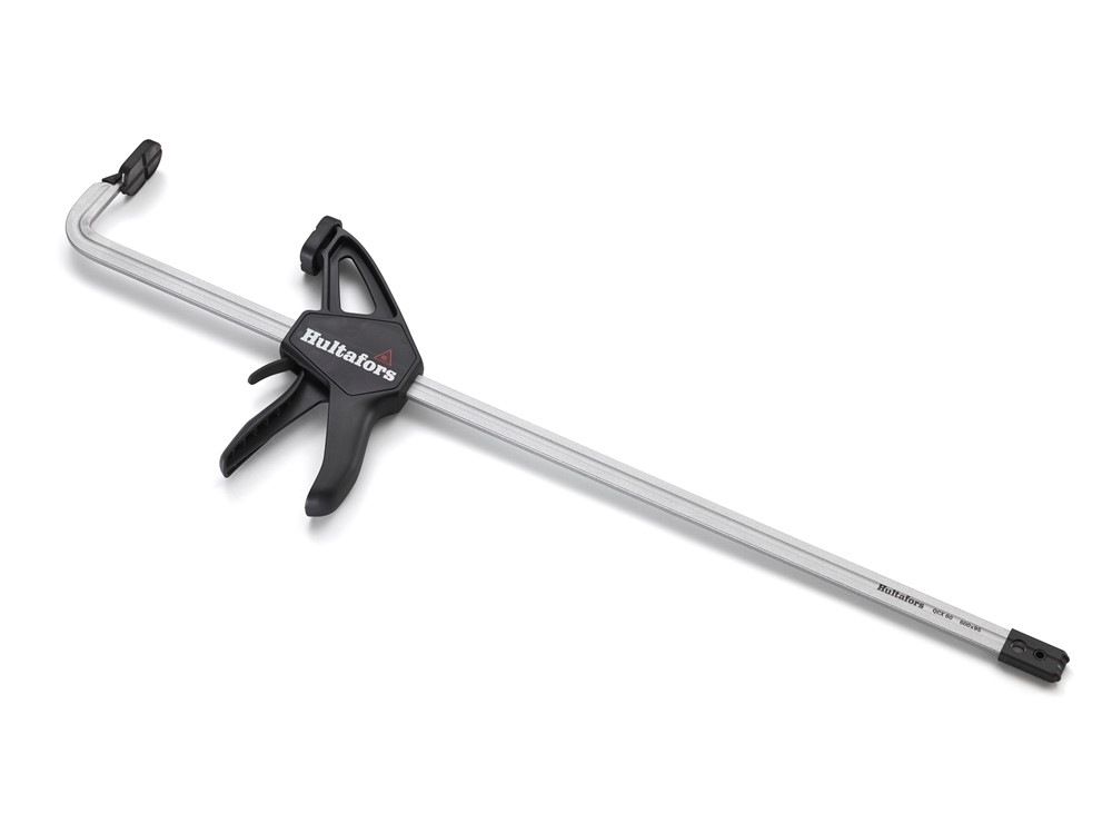 Kätevä yhdenkäden puristin on valmistettu lasikuituvahvisteisesta nailonista. Teräksinen kisko on taottu yhdestä kappaleesta ja sen ohut leukaosa helpottaa käyttöä ahtaissakin paikoissa. Puristuslevyjen uritetut kumitassut suojaavat puristettavia pintoja ja lisäävät puristusvoimaa. Suunnittelussa on painotettu kätevyyttä ja toimivuutta ahtaissa paikoissa.