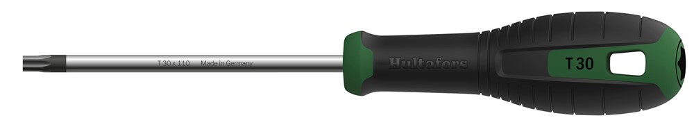 Yhdessä ammattilaisten kanssa kehitetty ergonomisesti muotoiltu Torx®-kärkimeisseli ammattikäyttöön. Pitkä kumipäällysteinen kahva mahdollistaa tarkan työskentelyn ja voimankäytön. Kahva on valmistettu kestävästä PPC-muovista ja se on päällystetty kestävällä ja hyvän pidon antavalla Santoprene™-kumilla. Kahvan päässä on merkittynä meisselin tyyppi ja koko – se helpottaa oikean meisselin valintaa. Varsi on valmistettu korkealaatuisesta karkaistusta teräksestä. Ruuvimeisselin kahvassa on reikä ripustamista tai turvanarun kiinnittämistä varten. Kahvan muotoilu estää ruuvitalttaa vierimästä kaltevilla pinnoilla.