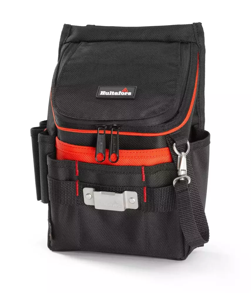 Keskikokoisessa vetoketjullisessa työkalutaskussa on päälokero, joka voidaan sulkea kahdensuuntaisella vetoketjuilla. Se pitää työkalut tallessa ja estää pieniä tavaroita putoamasta. Valmistettu kestävästä ballistisesta polyesterikankaasta, kestävyys 1 680 denieriä. Sisältää helppokäyttöiset mittanauhan ja sähköteippirullan pidikkeet. Kun päivä on pulkassa, voit sulkea vetoketjun ja irrottaa taskun tietäen, että työkalusi ovat turvassa ja pysyvät tallessa.