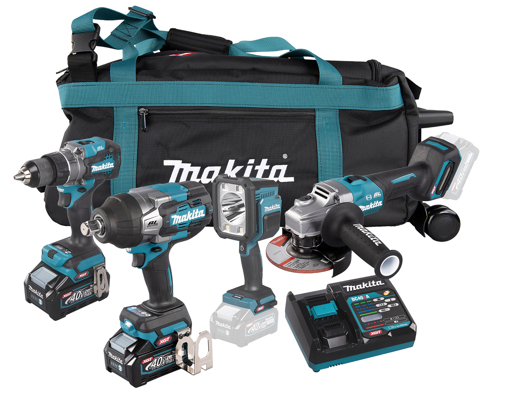 Neljän laitteen 40V XGT akkutyökalusarja esimerkiksi isojen koneiden huolto- ja korjaustöihin. Sisältää porakoneen DF001G, iskevän mutterinvääntimen TW001G, kulmahiomakoneen GA005G ja LED valaisimen ML007G sekä kaksi 4,0Ah akkua ja pikalatauslaitteen DC40RA. Sarjaan kuuluu lisäksi työkalukassi pyörillä koneiden säilytystä ja kuljetusta varten.