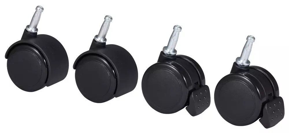 4kpl pyöriä akkukäyttöiselle imurille VC013G. 2kpl jarrullisia, 2kpl ilman jarrua.