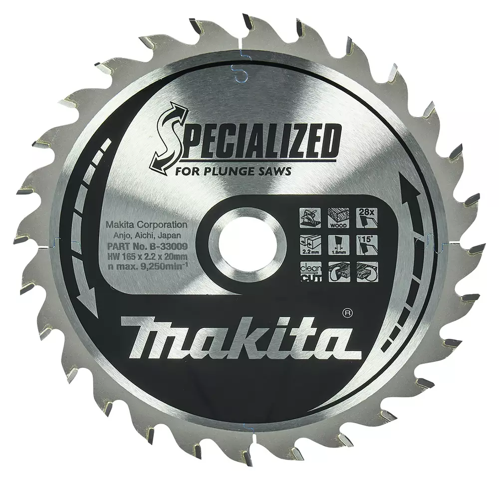 Specialized pyörösahanterä 165 mm halkaisijalla ja Z-28 hammastuksella puun sahaamiseen. Terä jättää siistin sahausjäljen ja soveltuu upotuspyörösahoilla käytettäväksi. Terän hampaan leveys 2,2 mm ja reiän halkaisija 20 mm.
