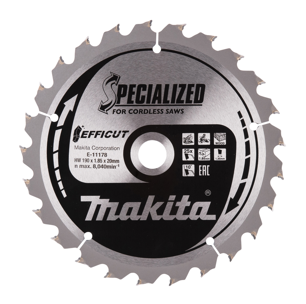 MAKITA Pyörösahanterä 190 x 20 x 1,85 mm, Z-25 puulle, EFFICUT E-11178