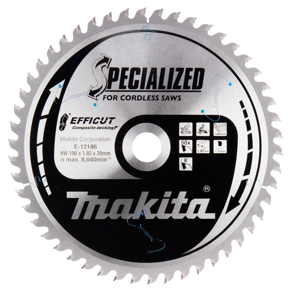 MAKITA Pyörösahanterä 190 x 20 x 1,85 mm, Z-50 komposiittilaudalle, EFFICUT E-12251 / E-12186