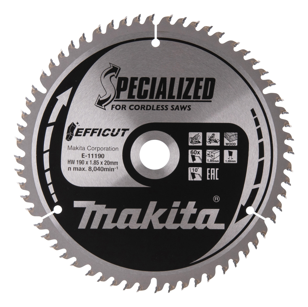 MAKITA Pyörösahanterä 190 x 20 x 1,85 mm, Z-60 puulle, EFFICUT E-11190