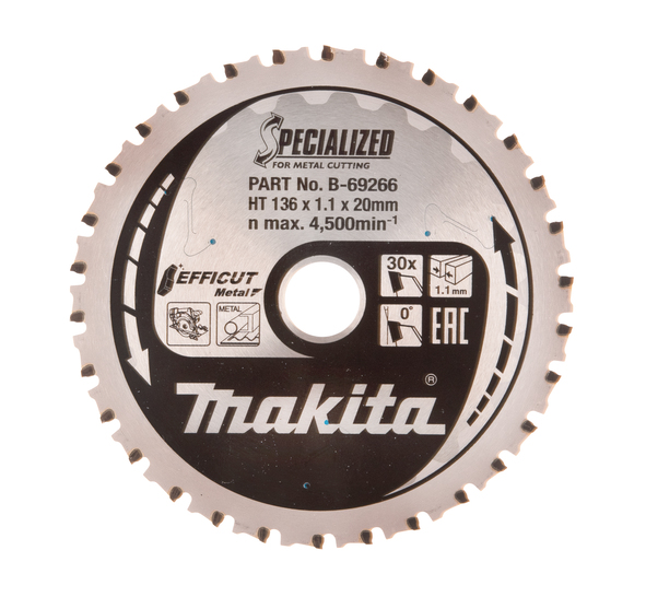 MAKITA Pyörösahanterä HM 136x20x1,1 mm, Z-30 metallille, EFFICUT B-69303 / B-69266