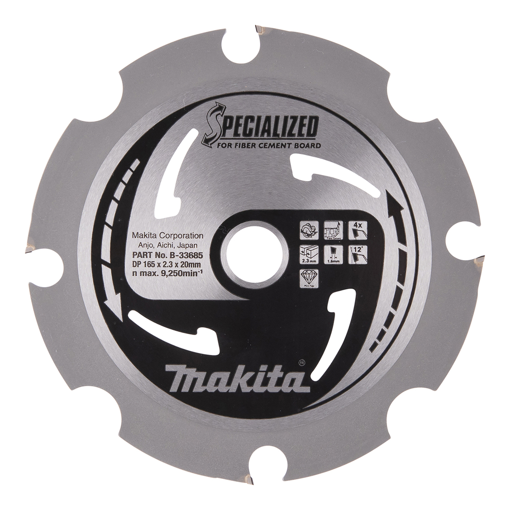 MAKITA B-33685 / B-22997 Pyörösahanterä HM 165mm, Z-4 Upotuspyörösahat. Kivikuitulevylle