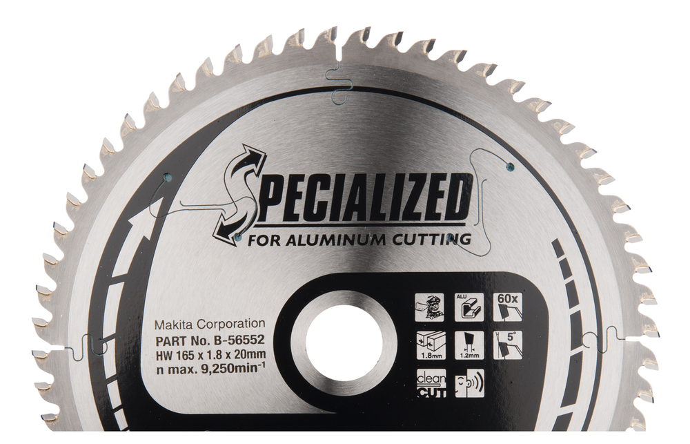 Jiirisahat, Esim. malleille DLS600Specialized pyörösahanterä 165mm halkaisijalla ja Z-60 hammastuksella alumiinin sahaamiseen. Terä soveltuu akkujiirisahoilla käytettäväksi. Terän hampaan leveys 1,8mm ja reiän halkaisija 20mm.