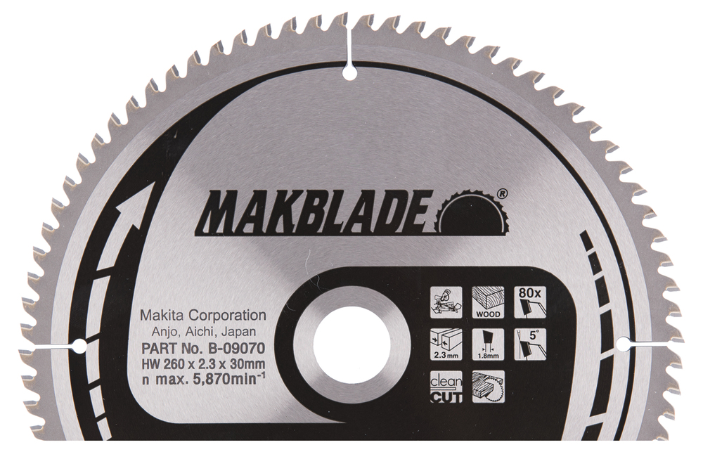 MAKITA B-32845 / B-09070 Makblade pyörösahanterä 260mm halkaisijalla ja Z-80 hammastuksella puun sahaamiseen.