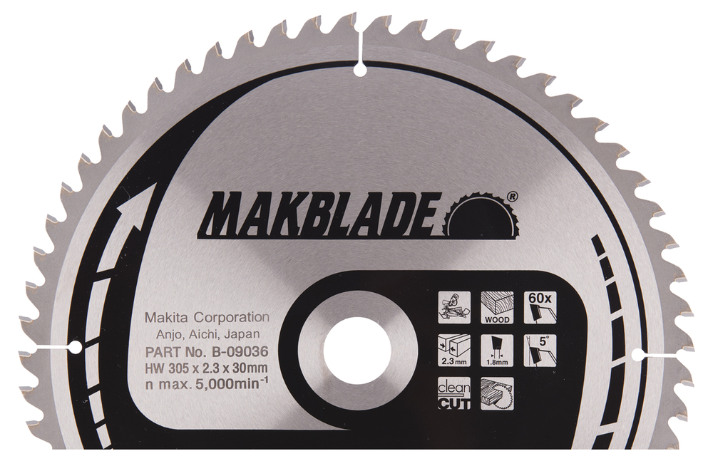 MAKITA B-32817 / B-09036 Makblade pyörösahanterä 305mm halkaisijalla ja Z-60 hammastuksella puun sahaamiseen.