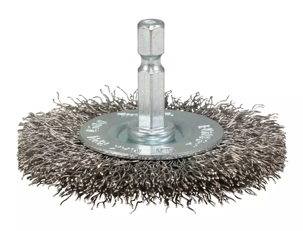 Poimutettu 65 mm leveä laikkaharja 0,30 mm paksuisella ruostumattomalla teräslangalla materiaalien ja esim. ruosteen poistoon. 1/4" kuusiokantakiinnitys porakoneille ja iskeville ruuvinvääntimille.