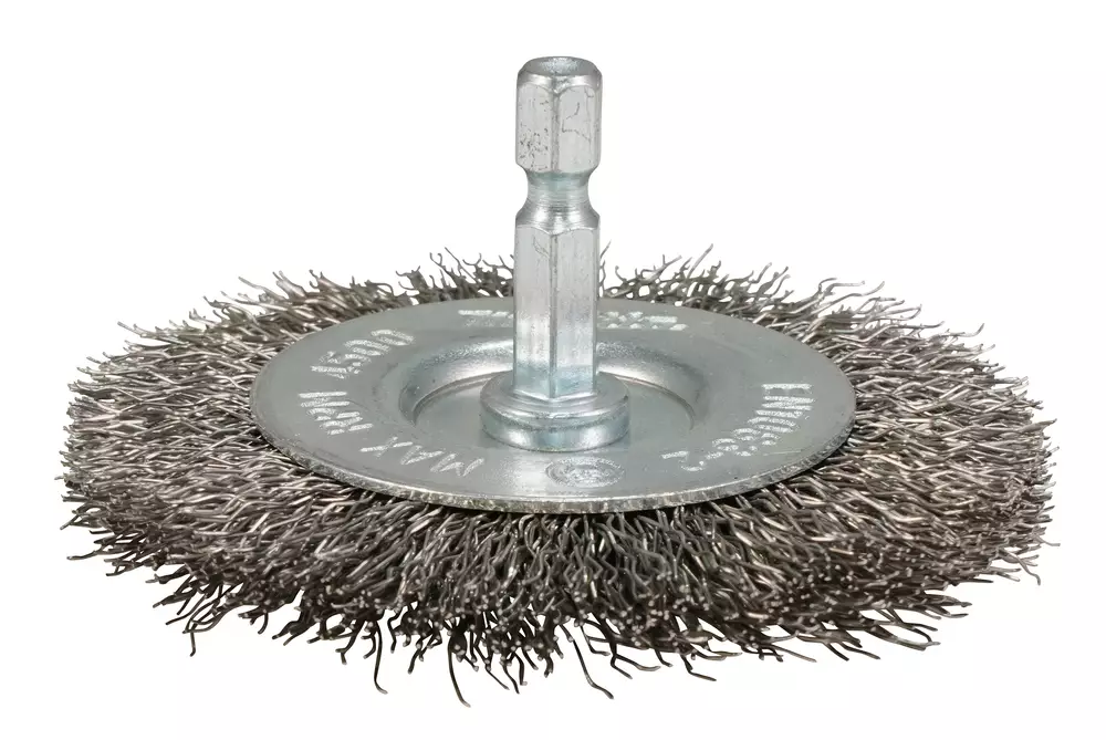 Poimutettu 75 mm leveä laikkaharja 0,30 mm paksuisella ruostumattomalla teräslangalla materiaalien ja esim. ruosteen poistoon. 1/4" kuusiokantakiinnitys porakoneille ja iskeville ruuvinvääntimille.