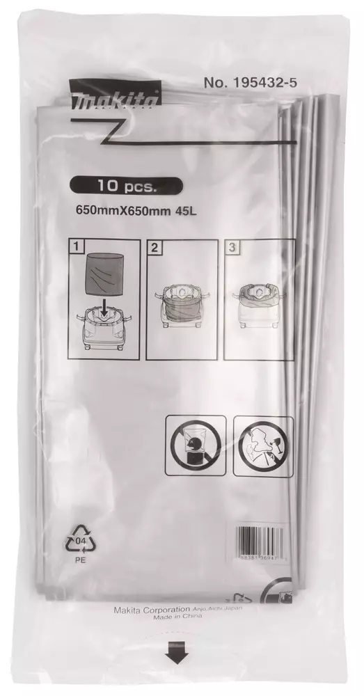 MAKITA Pölysäkki muovia 10 kpl. Helpottaa säiliön tyhjentämistä 195432-5