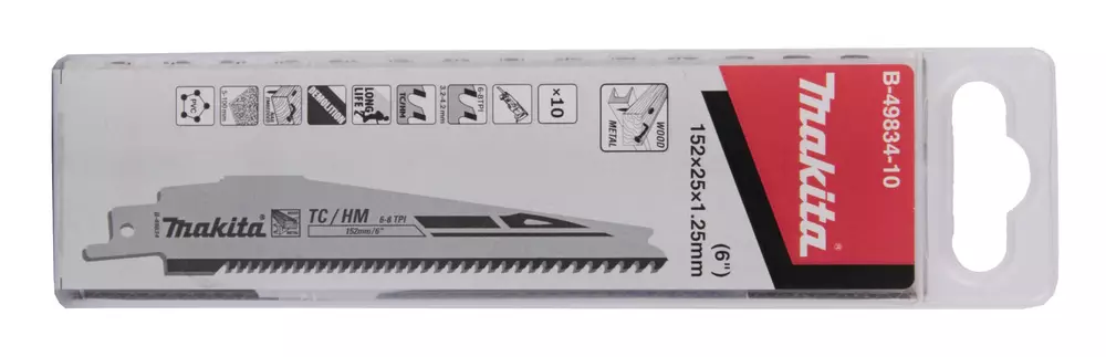 MAKITA Puukkosahanterä HM 152 x 1,25 mm, metallinen puu, muovi ja lasikuitu, 10 kpl B-49834-10