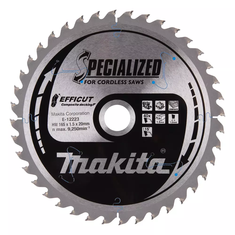 MAKITA Pyörösahanterä 165 x 20 x 1,5 mm, Z-40 komposiittilaudalle, EFFICUT E-12223 / E-12158