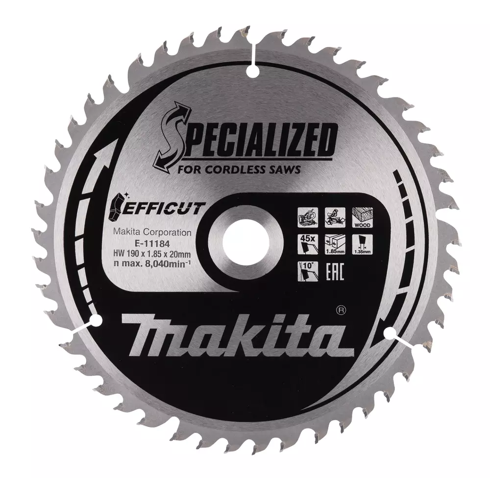 MAKITA Pyörösahanterä 190 x 20 x 1,85 mm, Z-45 puulle, EFFICUT E-11184