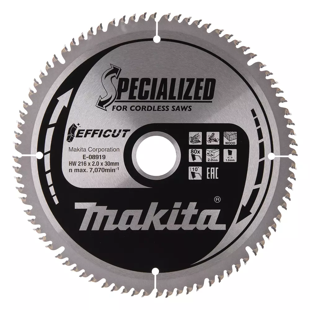 MAKITA Pyörösahanterä 216 x 30 x 2,0 mm, Z-80 puulle, Efficut, jiirisahoille E-08919