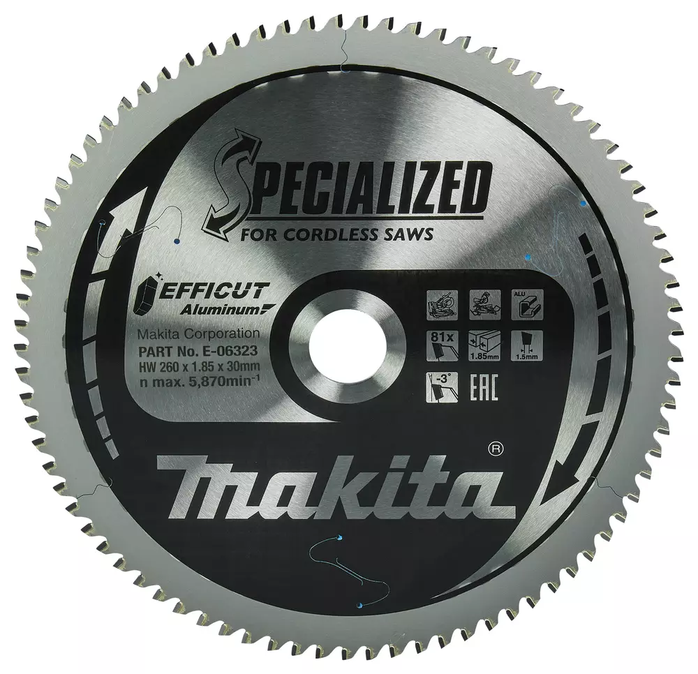 MAKITA Pyörösahanterä 260 x 30 x 1,85 mm, Z-81 alumiinille, Efficut, jiirisahoille E-06323