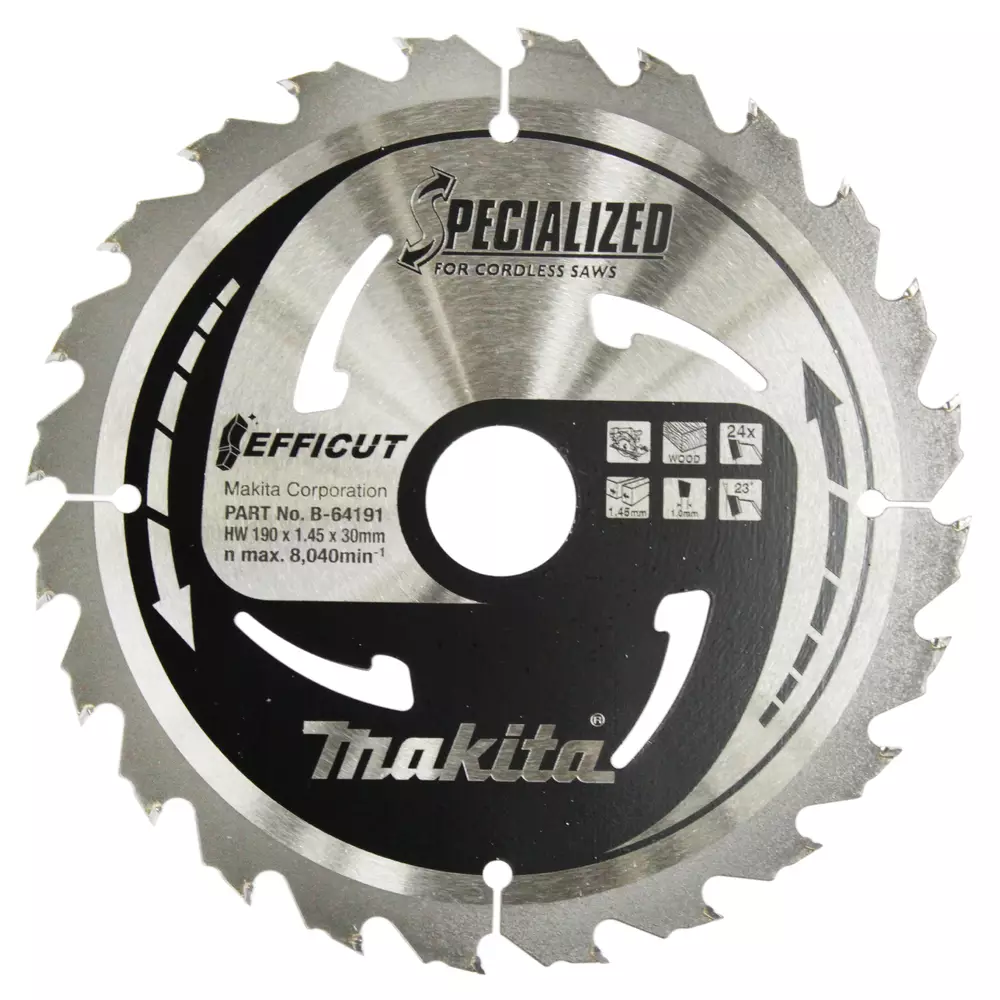 Akkukäyttöisille käsisirkkeleille tarkoitettu pyörösahanterä erityisellä EFFICUT-hammastuksella. Uusi hammastus takaa siistin leikkuujäljen ja enemmän katkaisuja yhdellä latauksella. Esim. Malleille: DHS710, DHS782, DHS783, HS004, HS7601