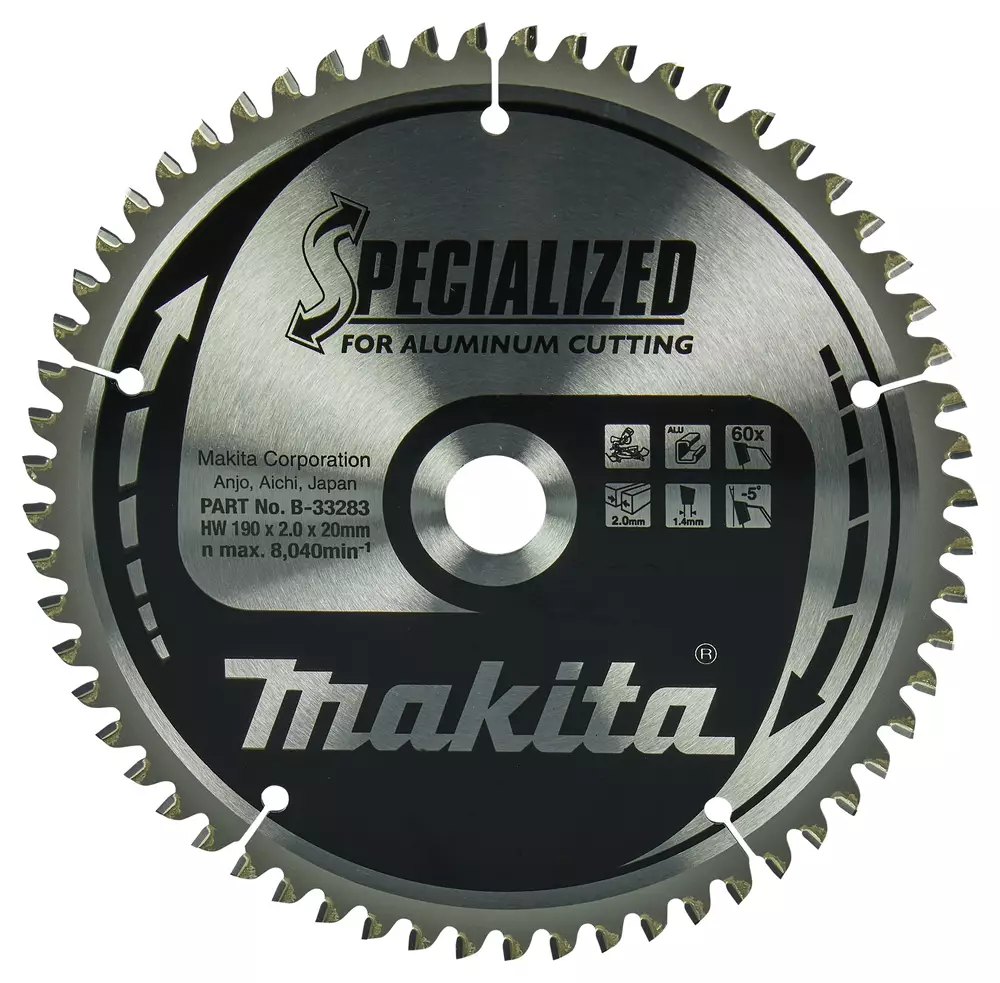 MAKITA B-33283 / B-09612 Specialized pyörösahanterä 190mm halkaisijalla ja Z-60 hammastuksella alumiinin sahaamiseen.