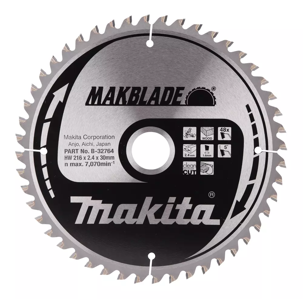 MAKITA B-32764 / B-09969 Makblade pyörösahanterä 216mm halkaisijalla ja Z-48 hammastuksella puun yleiseen sahaamiseen.