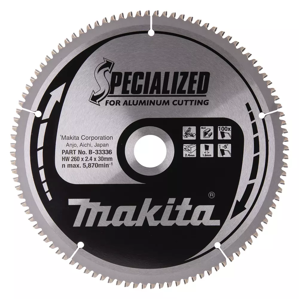 MAKITA B-33336 Specialized pyörösahanterä 260mm halkaisijalla ja Z-100 hammastuksella alumiinin sahaamiseen.