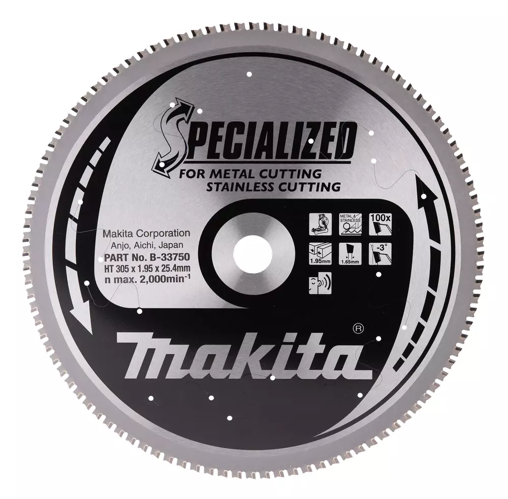 Metallikatkaisusahat Esim. malleille LC1230NSpecialized pyörösahanterä 305mm halkaisijalla ja Z-100 hammastuksella ruostumattoman teräksen sahaamiseen. Terä soveltuu metallikatkaisusahoilla käytettäväksi. Terän hampaan leveys 1,95mm ja reiän halkaisija 25,4mm.