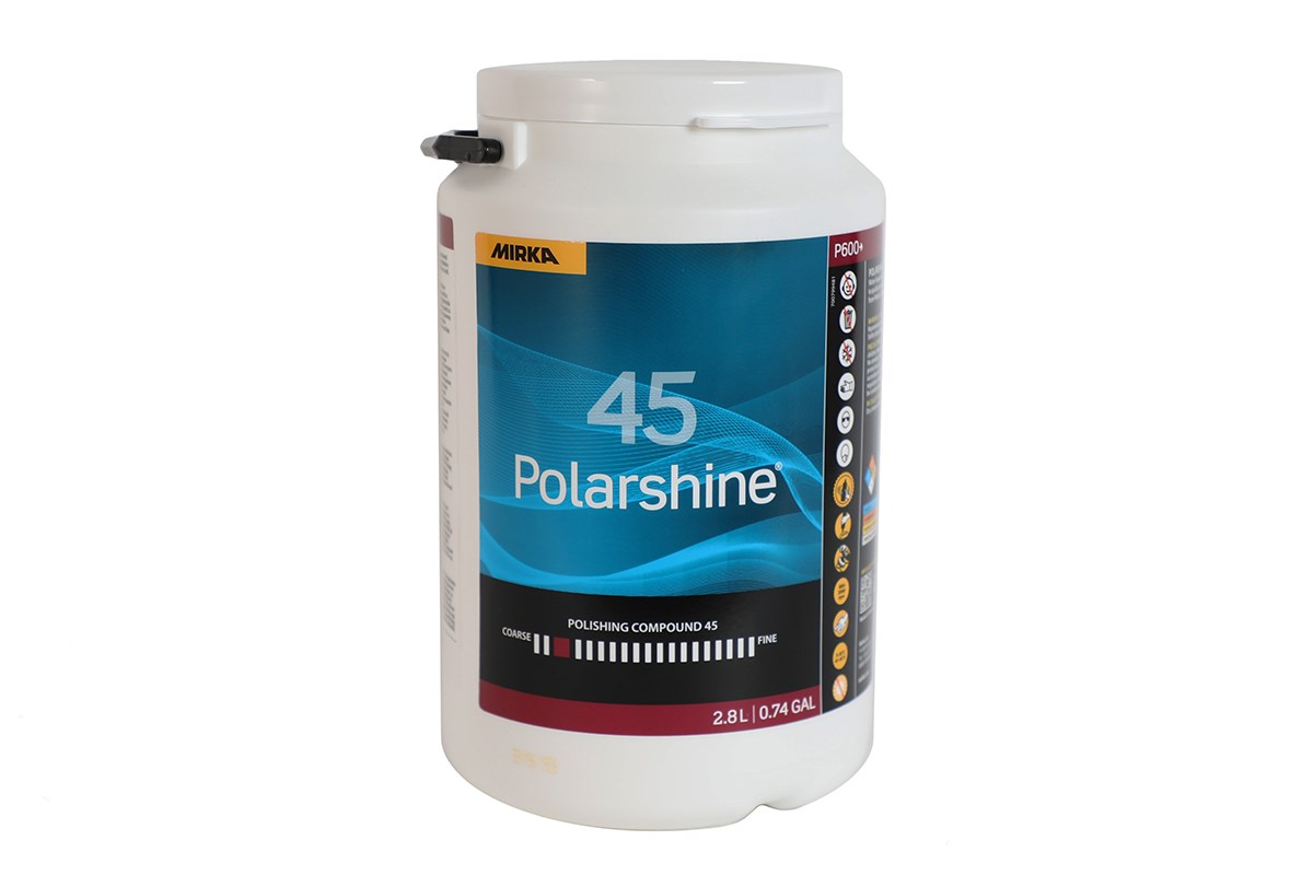 Karkea ja tehokas kiillotusaine nopeaan kiillotukseen ja korkeakiiltoiseen viimeistelyyn. Poistaa hionnan jälkeiset naarmut karkeudesta P600 hienompaan nopeasti ja pysyvästi. Suunniteltu koville pinnoille ja pinnoitteille, erityisesti venealan tarpeisiin. Polarshine 45 -kiillotusaine soveltuu sekä tuotanto- että korjausprosesseihin ja on ihanteellinen yhden askeleen kiillotusmenetelmä valkoisille ja vaaleille gelcoat-pinnoille. Tummille väreille suositellaan käytettäväksi lisäksi Polarshine 10 pyörrejälkien poistamiseksi.