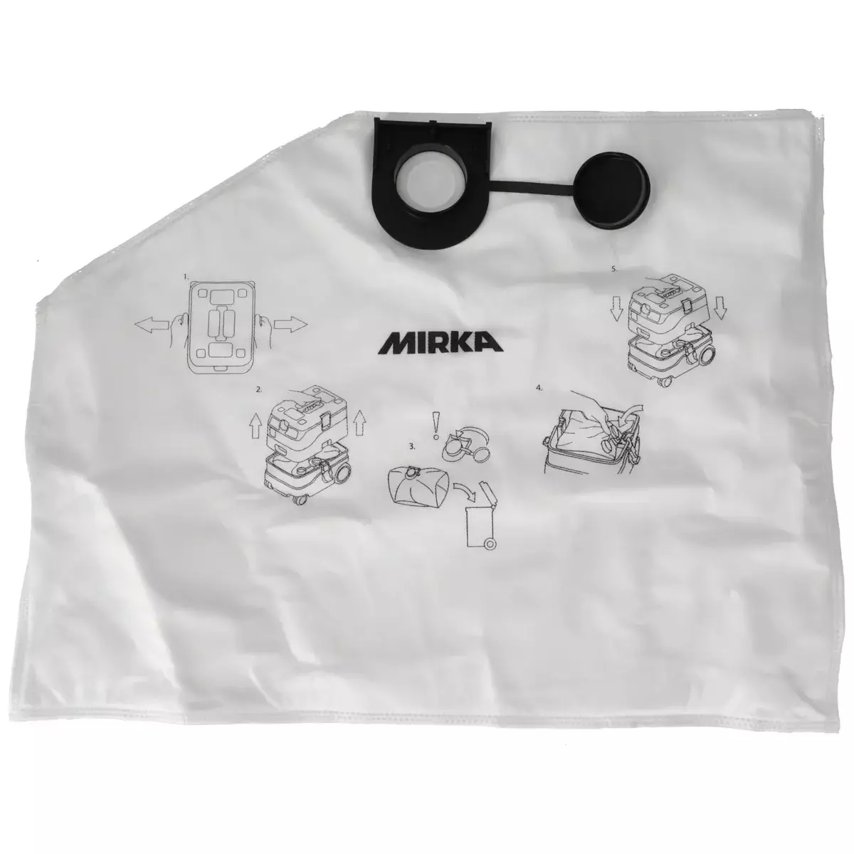 Kestävät fleece-pölypussit Mirka® DEXOS 1217 pölynimurille. Pölypussit toimitetaan viiden kappaleen paketeissa.