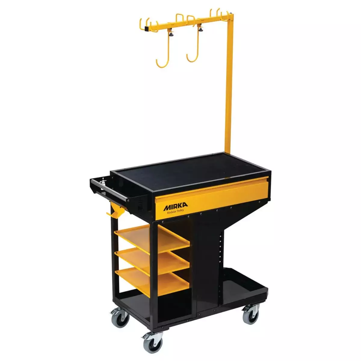 Mirkan Modular Trolley osista koostuva tarvikevaunu Basic on suunniteltu tehostamaan ja optimoimaan autokorjaamon työnkulkua työtehtävästäsi riippumatta. Tarvikevaunussa kaikki koneet, hiomatuotteet ja muut tarvikkeet ovat käden ulottuvilla, hyvässä järjestyksessä. Modulaarisen rakenteensa ansiosta tarvikevaunu voidaan räätälöidä tarpeen mukaan. Saatavilla on niin peruskäyttöisiä kuin viimeisen päälle varusteltujakin kokonaisuuksia, sillä jokainen moduuli voidaan asentaa erikseen. Mirka Tarvikevaunu on erityisen hyvä työpari kolarikorjaukseen, maalauksen viimeistelyyn, kiillotukseen tai mihin tahansa autokorjaamoon työnkuvaan. Toimitetaan osina, kokoamisohjeet pakkauksessa. Valmistettu suomessa.