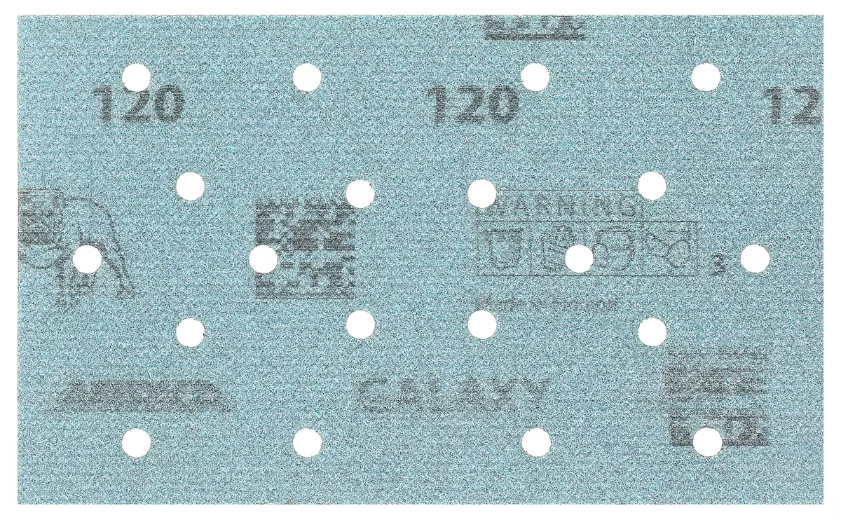 Mirka Galaxy on monikäyttöinen hiomatuote. Tuote soveltuu metallin, puun, lasikuidun, tasoitteiden ja gelcoatin hiontaan. Keraamiset hiomajyvät teroittuvat itsestään hionnan aikana, jonka ansiosta hiomatuote säilyttää pitkän käyttöiän sekä tehokkaan hionnan. Optimoitu Multifit-konsepti varmistaa sen, että hiomatuotteen voi asettaa kohdistamatta sitä alustallaan. Sama reikäkuvio mahdollistaa myös erinomaisen reunakestävyyden sekä hyvän pölynpoiston. Tuotteen pinnassa oleva pinnoite estää tukkeutumista ja pidentää käyttöikää. Mirka Galaxy sopii useille eri aloille kuten autojen vauriokorjaukseen, veneiden valmistukseen sekä puuteollisuuteen. Vain kuivahiontaan.