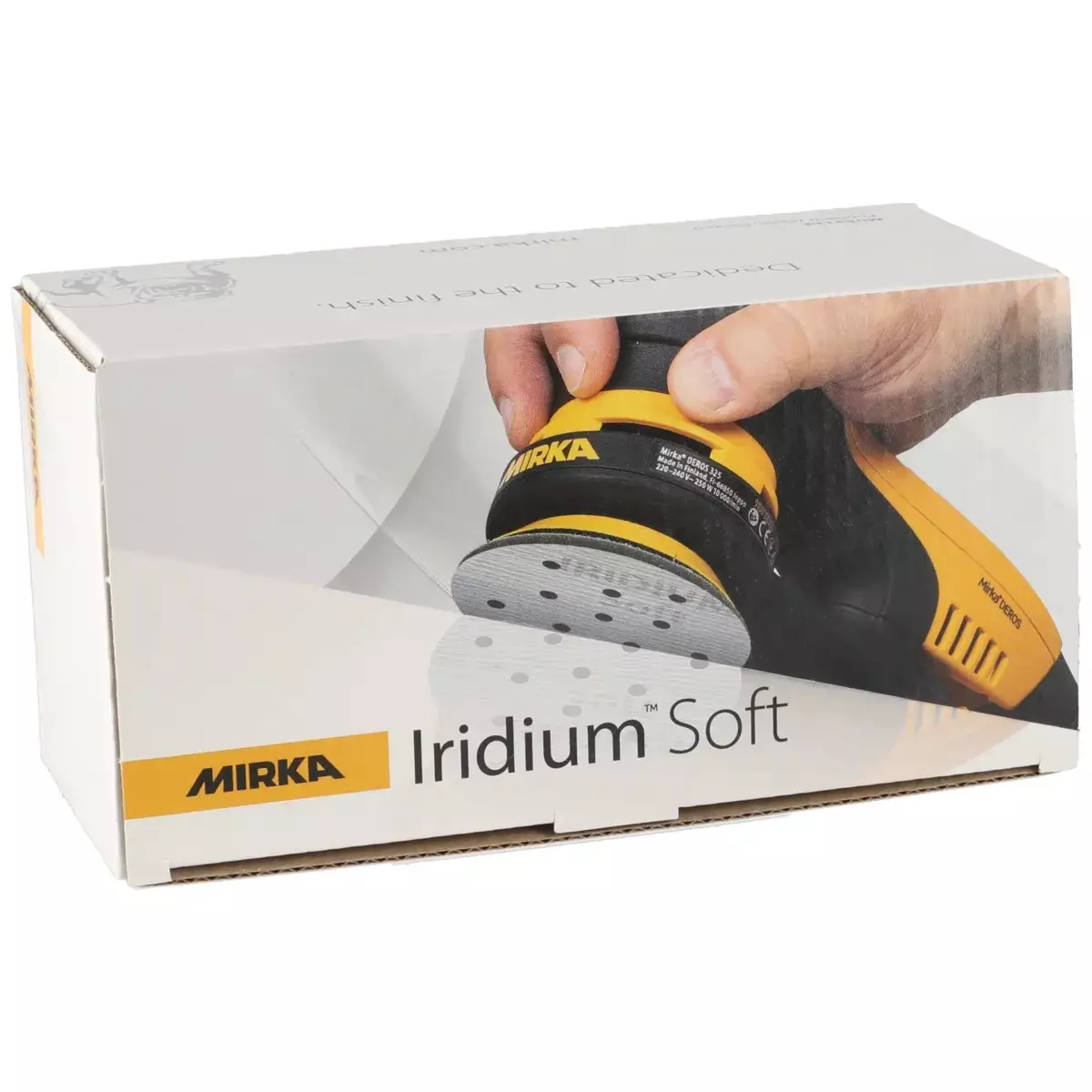 Mirka Iridium Soft on kolmiosainen rakenne, jossa on kestävästä alumiinioksidirakeista valmistettu hiomapinta ja joustava taustavaahto. Hyödyntämällä Mirkan Multifit-reikäkokoonpanoa tämä tuote tarjoaa tehokkaan hionnan, jossa on vähemmän tukkeumia, epätasaisuuksia ja pyörrejälkiä.