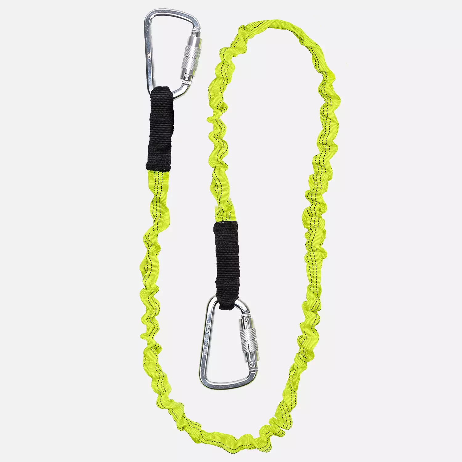 Laadukas (rakenteisiin kiinnitettävä) turvahihna, jossa 25 mm huomiovärinen-päällinen ja hieman joustava sisus. Maks. 6,8 kg työkaluille tarkoitetun turvahihnan pituus on venytettynä 1,9 m, ja molemmissa päissä on vahva lukittava karbiinihaka.