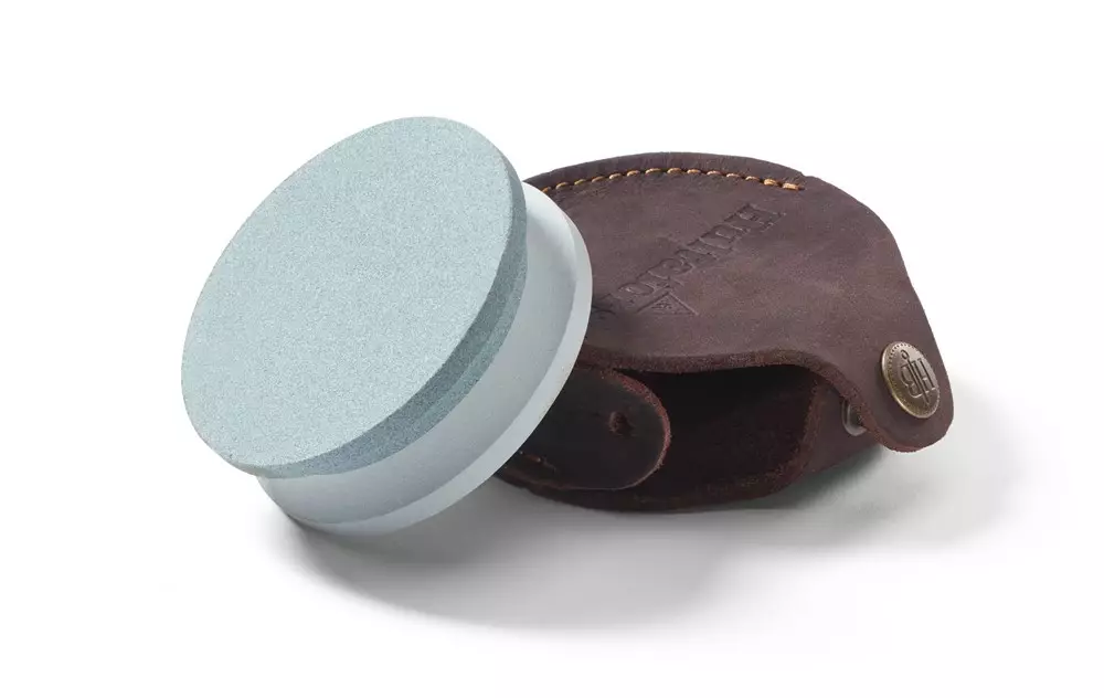 Hiomakivemme avulla voit helposti ja turvallisesti hioa kirveesi, missä tahansa oletkin. Hiomakiven muoto ja koko antaa hyvän otteen suojaten sormiasi. Hiomakivesi säilyy hyvin tyylikkäässä nahkaisessa kotelossa. Karkean sivun raekoko on 180 ja hienon puolen 600. Oheisten raekokojen yhdistelmä auttaa säilyttämään halutun terävyyden kirveessäsi. Jotta työsi olisi helpompaa, suosittelemme sinua käyttämään vettä hiomakiven kanssa.