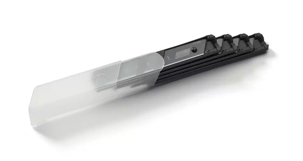 Erityisen terävä terä tarkkaan työskentelyyn. Kehitetty leikkaamaan tarkasti ja sopii erittäin hyvin myös kipsilevyjen leikkaamiseen.18 mm leveät terät on pakattu kätevään säilytysrasiaan, jossa 4 teräpakkausta, joissa kussakin kolme terää. Rasiaa voidaan käyttää terän katkaisuun.