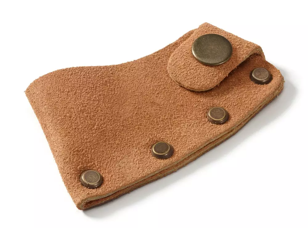 Nahkainen kirveen teräsuojus. Suojaa käyttäjää terävältä terältä ja pitää kirveen terän kunnossa. Sopii mallille 840042 Retkikirves H 006 SV