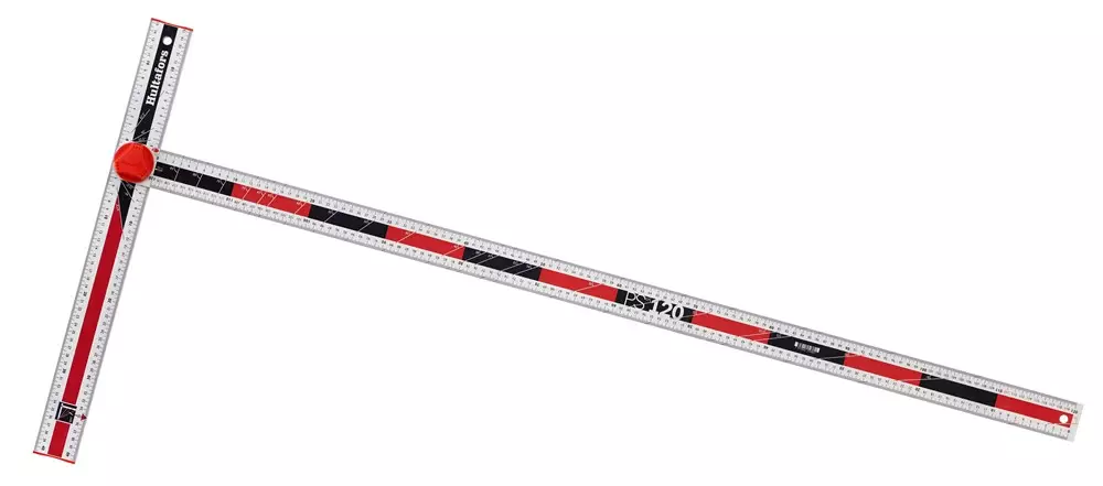 Säädettävä levysuorakulma, josta löydät millimetrit sekä asteet, jotka voidaan asettaa neljään kiinteään asentoon. Vaste ja terä voidaan taittaa yhteen, jolloin suorakulma on helppo säilyttää ja kuljettaa. Ominaisuus mahdollistaa myös oikea- ja vasenkätisen asennon.